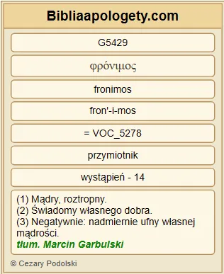 | L07 | 1Kor10_15 | Mówię G3004 jak G5613 do ludzi rozsądnych G5429 . Zresztą osądźcie G2919 sami G5210 to, co G3739 mówię G5346 : |