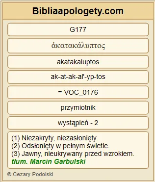 | L07 | 1Kor11_13 | Osądźcie G2919 zresztą G1722 sami G5213 G846 ! Czy G2076 wypada, aby kobieta G1135 modliła się G4336 do Boga G2316 z odkrytą G177 głową? |