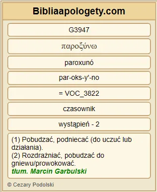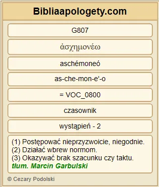 | L07 | 1Kor13_5 | nie G3756 dopuszcza się bezwstydu G807 , nie G3756 szuka G2212 swego G1438 , nie G3756 unosi się gniewem G3947 , nie G3756 pamięta G3049 złego G2556 \ |
