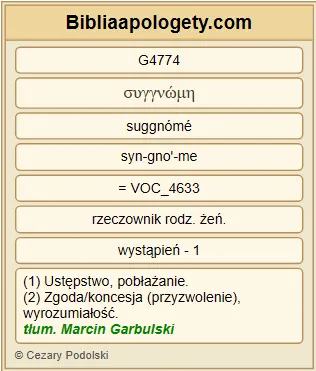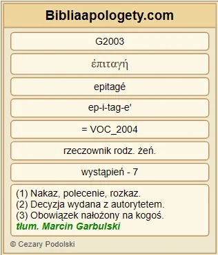 | L07 | 1Kor7_6 | To, co mówię G3004 , pochodzi z wyrozumiałości G4774 , a nie G3756 z nakazu G2003 . |