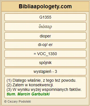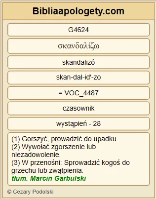 | L07 | 1Kor8_13 | Jeśli G1487 więc G1355 pokarm G1033 gorszy G4624 brata G80 mego G3450 , przenigdy G3756 G3361 G1519 G3588 G165 nie będę jadł G5315 mięsa G2907 , by G2443 nie gorszyć G4624 brata G80 . |