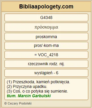 | L07 | 1Kor8_9 | Baczcie G991 jednak, aby to wasze G5216 prawo G1849 nie stało się G1096 dla słabych G772 powodem do zgorszenia G4348 . |