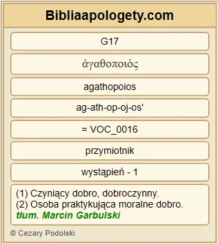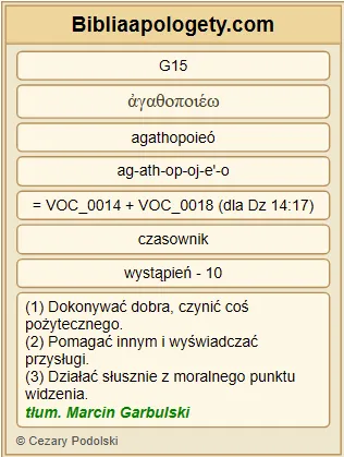 | L07 | 1P2_14 | czy to G1535 namiestnikom G2232 jako G5613 posłanym G3992 przez niego G1223 celem G1519 karania G1557 złoczyńców G2555 , a udzielania G1868 pochwały G1868 tym, którzy dobrze czynią G15 . |