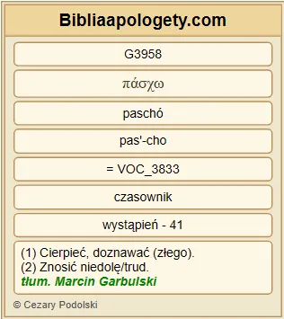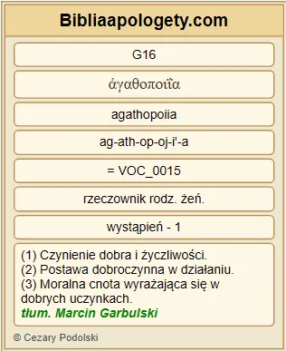 | L07 | 1P4_19 | Zatem G5620 również G2532 ci G3588 , którzy G3588 cierpią G3958 zgodnie G2596 z wolą G2307 Bożą G2316 , niech G3908 dobrze G16 czyniąc G4160 , wiernemu G4103 Stwórcy G2939 oddają G3908 swe G1438 dusze G5590 . |