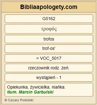 | L07 | 1Tes2_7 | A jako G5613 apostołowie G652 Chrystusa G5547 mogliśmy być G1410 dla was G5216 ciężarem G922 , my G235 jednak G1096 stanęliśmy pośród G1722 was G5216 pełni G3319 skromności G3516 , jak G5613 matka G5162 troskliwie opiekująca się G2282 swoimi G1438 dziećmi G5043 . |