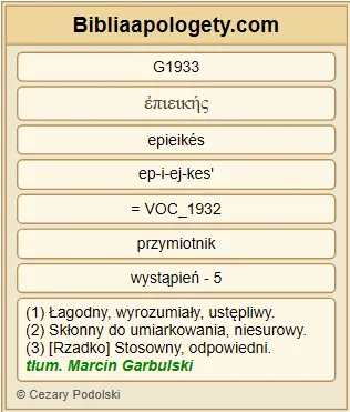 | L07 | 1Tm3_3 | nie G3361 przebierający miary w piciu wina G3943 , nieskłonny do bicia G4131 , ale G235 opanowany G1933 , niekłótliwy G269 , niechciwy na grosz G866 , |