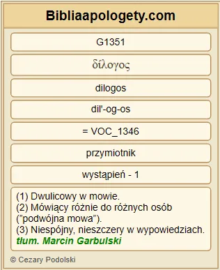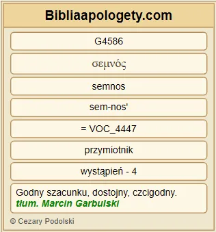 | L07 | 1Tm3_8 | Diakonami G1249 tak samo G5615 winni być ludzie godni G4586 , w mowie nieobłudni G1351 , nie nadużywający G4337 wina G3631 , niechciwi brudnego zysku G146 , |