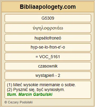 | L07 | 1Tm6_17 | Bogatym G4145 na tym świecie G1722 G3568 G165 nakazuj G3853 , by nie G3361 byli wyniośli G5309 , ani G3366 nie pokładali nadziei G1679 w niepewności G83 bogactwa G4149 , lecz G235 w Bogu G2316 , który obficie G4146 udziela G3930 nam G2254 wszystkiego G3956 do G1519 używania G619 . |