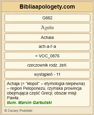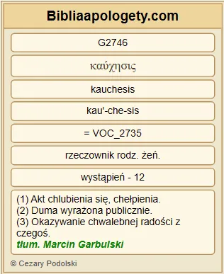 | L07 | 2Kor11_10 | Zapewniam G225 was G5213 przez będącą G2076 we mnie G1722 G1698 prawdę G225 Chrystusa G5547 , że G3754 nikt G3762 nie pozbawi mnie G5420 tej G3588 podstawy G2746 do chlubienia się G2746 w granicach G2824 Achai G882 . |