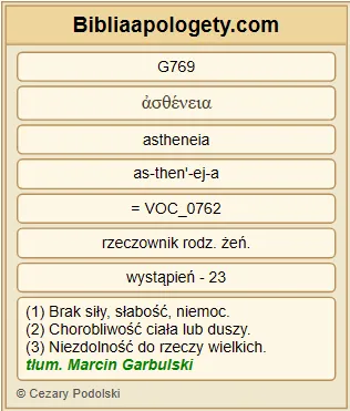 | L06 | 2Kor12_5 | Z tego więc będę się chlubił, a z siebie samego nie będę się chlubił, chyba że z moich słabości. | |||||||||||||