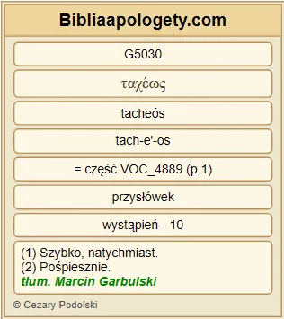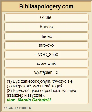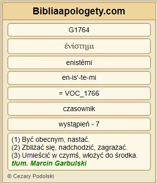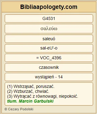 | L07 | 2Tes2_2 | abyście się nie G3361 dali G4531 zbyt łatwo G5030 zachwiać G4531 w waszym G5216 rozumieniu G3563 ani G3366 zastraszyć G2360 bądź G3383 przez ducha G4151 , bądź G3383 przez mowę G3056 , bądź G3383 przez list G1992 , rzekomo G5613 od nas G1223 pochodzący, jakoby już nastawał G1764 dzień G2250 Pański G2962 . |