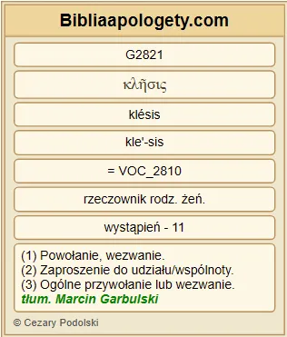 | L06 | 2Tm1_9 | On nas wybawił i wezwał świętym powołaniem nie na podstawie naszych czynów, lecz stosownie do własnego postanowienia i łaski, która nam dana została w Chrystusie Jezusie przed wiecznymi czasami. | ||||||||||||||||||||||||||
