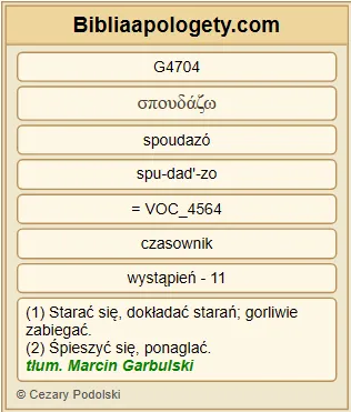 | L07 | 2Tm2_15 | Dołóż starania G4704 , byś sam stanął G3936 przed Bogiem G2316 jako godny uznania G1384 pracownik G2040 , który nie przynosi wstydu G422 , trzymając się prostej linii G3718 słowa G3056 prawdy G225 . |