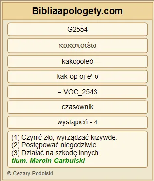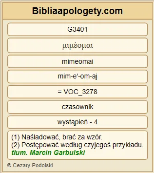 | L07 | 3J1_11 | Umiłowany G27 , nie G3361 naśladuj G3401 zła G2556 , lecz G235 dobro G18 . Ten, kto czyni dobro G15 , jest G2076 z Boga G1537 G2316 \ ten zaś, kto czyni zło G2554 , nie G3756 widział G3708 Boga G2316 . |