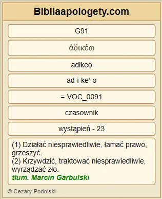 | L07 | Ap2_11 | (11) Kto G3588 ma G2192 uszy G3775 , niechaj posłyszy G191 , co G5101 mówi G3004 Duch G4151 do Kościołów G1577 . Zwycięzcy G3528 śmierć G2288 druga G1208 na pewno nie G3756 G3361 wyrządzi szkody G91 . |