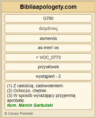 | L07 | Dz21_17 | Kiedy znaleźliśmy się G1096 w Jerozolimie G2414 , bracia G80 przyjęli G588 nas G2248 z radością G780 . |