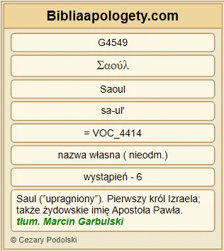 | L07 | Dz22_7 | Upadłem G4098 na ziemię G1475 i posłyszałem G191 głos G5456 , który mówił G3004 do mnie G3427 : Szawle G4549 , Szawle G4549 , dlaczego G5101 Mnie G3165 prześladujesz G1377 ? |