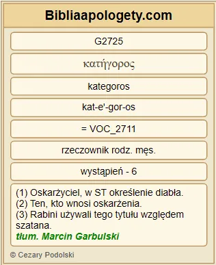 | L07 | Dz25_16 | Odpowiedziałem G611 im, że Rzymianie G4514 nie mają zwyczaju G1485 skazywania kogokolwiek G5100 , zanim oskarżony G2723 nie stanie wobec oskarżycieli G2725 i nie będzie miał możności bronienia się G627 przed zarzutami G1462 . |