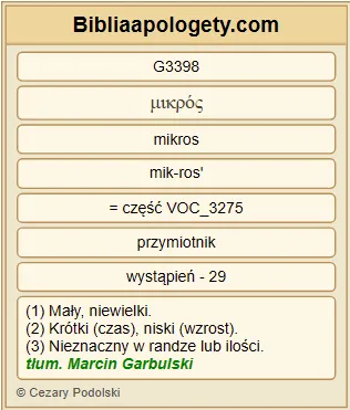| L07 | Dz8_10 | Poważali go wszyscy G3956 od najmniejszego G3398 do największego G3173 : „Ten G3778 jest wielką G3173 mocą G1411 Bożą G2316 ” – mówili G3004 . |