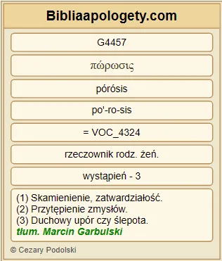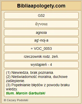 | L06 | Ef4_18 | umysłem pogrążeni w mroku, obcy dla życia Bożego, na skutek tkwiącej w nich niewiedzy, na skutek zatwardziałości serca. | |||||||||||||||||||||