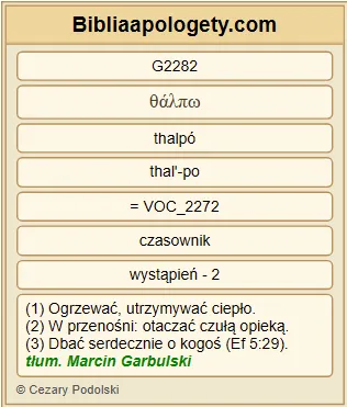 | L07 | Ef5_29 | Przecież G1063 nigdy G3762 nikt G4218 nie nienawidził G3404 własnego G1438 ciała G4561 , lecz G235 je żywi G1625 i G2532 pielęgnuje G2282 , jak i G2531 Chrystus G5547 – Kościół G1577 , |