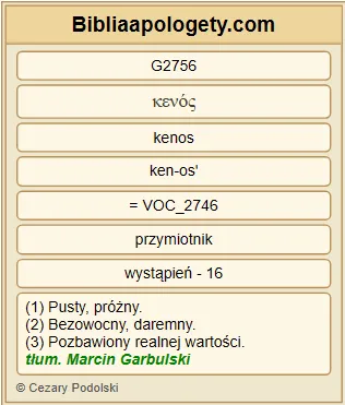 | L07 | Ef5_6 | Niechaj was G5209 nikt G3367 nie zwodzi G538 próżnymi G2756 słowami G3056 , bo G1063 przez te [grzechy] nadchodzi G2064 gniew G3709 Boży G2316 na G1909 buntowników G543 . |