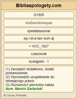 | L07 | Ga3_15 | Bracia G80 , użyję G3004 przykładu G1242 ze stosunków między ludźmi G444 . Nikt G3762 nie obala G114 ani G2228 zmienia G1928 testamentu G1242 prawnie sporządzonego G2964 , choć jest on jedynie G3676 dziełem ludzkim G444 . |