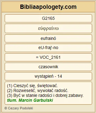 | L07 | Ga4_27 | Wszak G1063 napisane jest G1125 : Wesel się G2165 , niepłodna G4723 , która nie G3756 rodziłaś G5088 , wykrzykuj G4486 z radości G994 , która nie G3756 znałaś bólów rodzenia G5605 , bo G3754 więcej G4183 dzieci G5043 ma samotna G2048 niż G2228 ta, która ma G2192 męża G435 . |