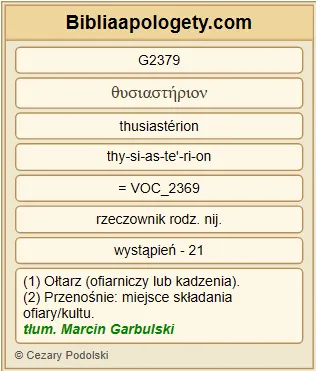 | L07 | Hbr13_10 | Mamy G2192 ołtarz G2379 , z którego G1537 nie G3756 mają G2192 prawa G1849 spożywać G5315 ci G3588 , którzy G3588 służą G3000 przybytkowi G4633 . |