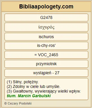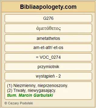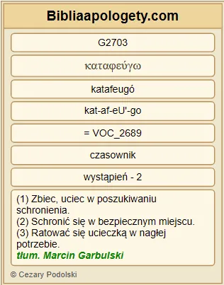 | L07 | Hbr6_18 | abyśmy G2443 przez G1223 dwie G1417 rzeczy G4229 niezmienne G276 , co do których G3739 niemożliwe jest G102 , by Bóg G2316 skłamał G5574 , mieli G2192 trwałą pociechę G3874 , my, którzyśmy się uciekli G2703 do uchwycenia zaofiarowanej nadziei G1680 . |