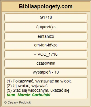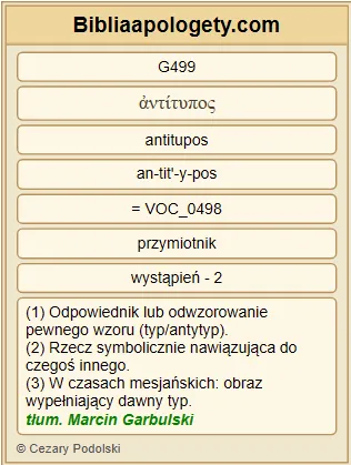 | L07 | Hbr9_24 | Chrystus G5547 bowiem G1063 wszedł G1525 nie G3756 do świątyni G39 , zbudowanej rękami G5499 , będącej odbiciem G499 prawdziwej [świątyni] G228 , ale G235 do samego G846 nieba G3772 , aby teraz G3568 wstawiać się G1718 za nami G5228 przed obliczem G4383 Boga G2316 . |