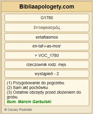 | L07 | J12_7 | Na to G3767 Jezus G2424 powiedział G2036 : Zostaw G863 ją G846 ! Przechowała G5083 to G846 , aby [Mnie namaścić] na G1519 dzień G2250 mojego G3450 pogrzebu G1780 . |