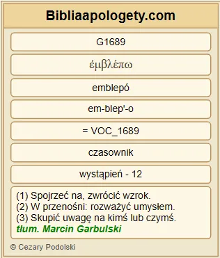 | L07 | J1_42 | I przyprowadził G71 go G846 do G4314 Jezusa G2424 . A Jezus G2424 wejrzawszy G1689 na niego G846 rzekł G2036 : Ty G4771 jesteś G1488 Szymon G4613 , syn G5207 Jana G2491 , ty G4771 będziesz nazywał się G2564 Kefas G2786 — to znaczy G3739 : Piotr G4074 . |
