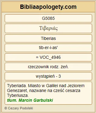 | L07 | J21_1 | Potem znowu ukazał się G5319 Jezus G2424 nad Morzem G2281 Tyberiadzkim G5085 . A ukazał się G5319 w ten sposób G3779 : |