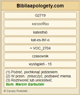 | L07 | J2_17 | Uczniowie G3101 Jego G846 przypomnieli sobie G3415 , że G3754 napisano G1125 : Gorliwość G2205 o dom G3624 Twój G4675 pochłonie G2719 Mnie G3165 . |