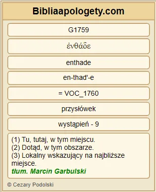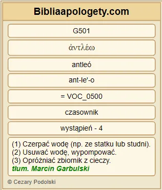 | L07 | J4_15 | Rzekła G3004 do Niego G846 kobieta G1135 : Daj G1325 mi G3427 tej G5124 wody G5204 , abym już G3361 nie G1372 pragnęła G1372 i G2532 nie G3361 przychodziła G1330 tu G1759 czerpać G501 . |
