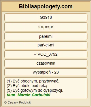 | L07 | J7_6 | Powiedział G3004 więc G3767 do G4314 nich G846 Jezus G2424 : Dla Mnie G1699 stosowny czas G2540 jeszcze G3768 nie G3756 nadszedł G3918 , ale G1161 dla was G5212 — zawsze G3842 jest G2076 do rozporządzenia G2092 . |