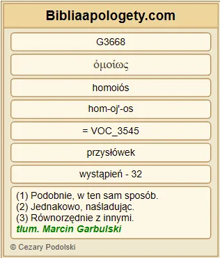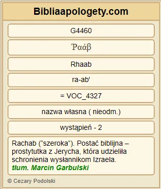 | L07 | Jk2_25 | Podobnie G3668 też G2532 nierządnica G4204 Rachab G4460 , która G3588 przyjęła G5264 wysłanników G32 i G2532 inną G2087 drogą G3598 odprawiła G1544 ich G846 , czy G3756 nie G3756 dostąpiła G1344 usprawiedliwienia G1344 za G1537 swoje G1438 uczynki G2041 ? |