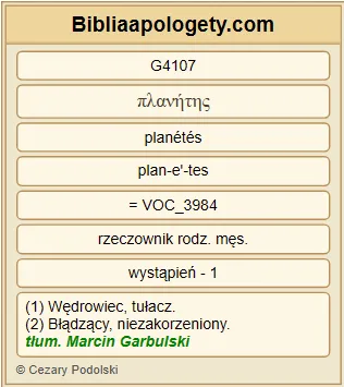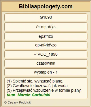 | L07 | Jud1_13 | rozhukane G66 bałwany G2949 morskie G2281 wypluwające G1890 swoją hańbę G152 , gwiazdy G792 zabłąkane G4107 , dla których G3739 nieprzeniknione ciemności G2217 G4655 na wieki G1519 G165 przeznaczone G5083 . |