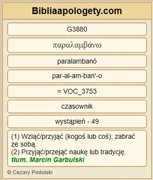 | L07 | Kol2_6 | Jak G5613 więc G3767 przejęliście G3880 naukę G3588 o G4012 Chrystusie G5547 Jezusie G2424 jako G5613 Panu G2962 , tak G3779 w G1722 Nim G846 postępujcie G4043 , |