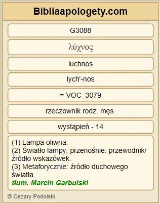 | L06 | Lk11_36 | Jeśli zatem całe twoje ciało będzie w świetle, nie mając w sobie nic ciemnego, całe będzie w świetle, jak gdyby światło oświecało cię swym blaskiem. | ||||||||||||||||||||||
