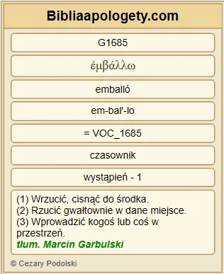| L07 | Lk12_5 | Pokażę G5263 wam, kogo się macie obawiać G5399 : bójcie się G5399 Tego, który po zabiciu G615 ma moc G1849 wtrącić G1685 do piekła G1067 . Tak, mówię G3004 wam: Tego się bójcie G5399 ! |