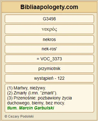 | L07 | Lk16_30 | Nie G3780 , ojcze G3962 Abrahamie G11 – odrzekł G2036 tamten – lecz gdyby kto G5100 z umarłych G3498 poszedł G4198 do nich G848 , to się nawrócą G3340 . |