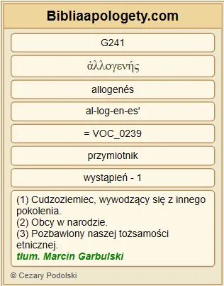 | L07 | Lk17_18 | Żaden się nie znalazł, który by wrócił G5290 i oddał G1325 chwałę G1391 Bogu G2316 , tylko ten cudzoziemiec G241 . |