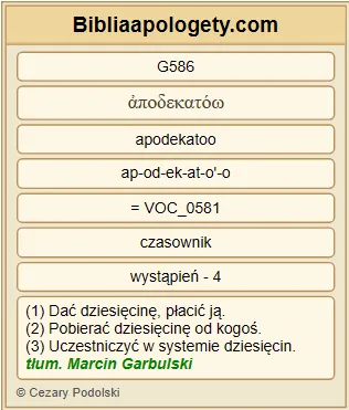 | L06 | Lk18_12 | Zachowuję post dwa razy w tygodniu, daję dziesięcinę ze wszystkiego, co nabywam. | |||||||