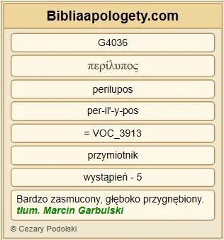 | L07 | Lk18_23 | Gdy to usłyszał G191 , mocno się zasmucił G4036 , gdyż był G2258 bardzo G4970 bogaty G4145 . |