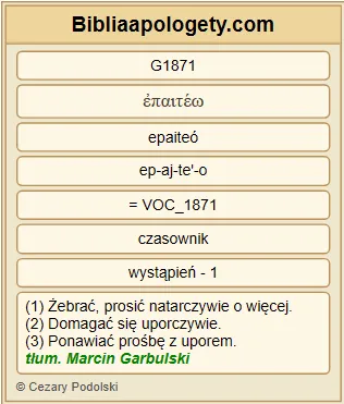 | L07 | Lk18_35 | Kiedy zbliżał się G1448 do Jerycha G2410 , jakiś G5100 niewidomy G5185 siedział G2521 przy drodze G3844 G3598 i żebrał G1871 . |