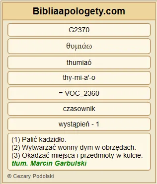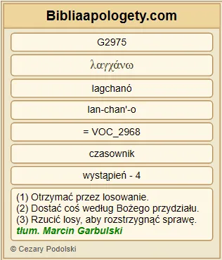 | L07 | Lk1_9 | jemu zgodnie ze zwyczajem G2596 G1485 kapłańskim przypadł los G2975 , żeby wejść G1525 do przybytku G3485 Pańskiego G2962 i złożyć ofiarę kadzenia G2370 . |