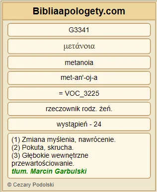 | L07 | Lk5_32 | Nie G3756 przyszedłem G2064 wezwać G2564 do nawrócenia G3341 sprawiedliwych G1342 , lecz G235 grzeszników G268 . |