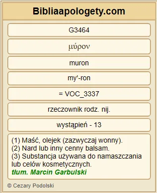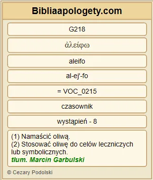 | L07 | Lk7_46 | Głowy G2776 nie namaściłeś Mi G3450 oliwą G1637 \ ona zaś olejkiem G3464 namaściła G218 moje nogi G4228 . |